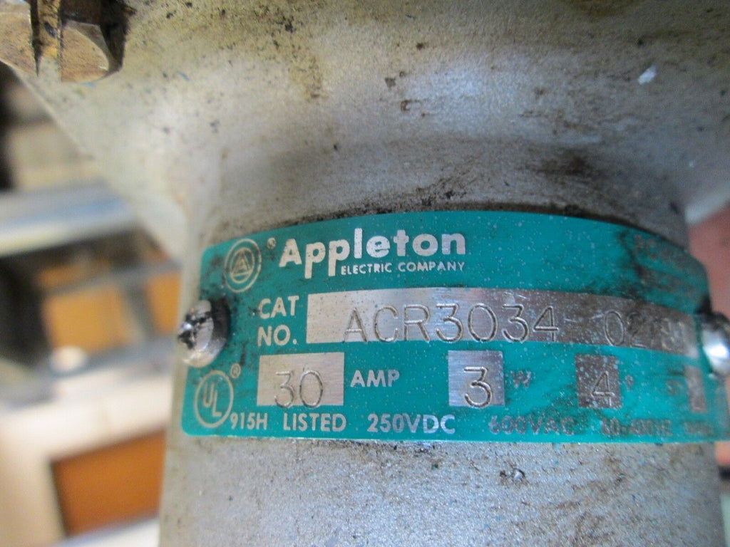 Appleton Receptacle w/Base ACR 3034 30A 600V 3W 4P Used