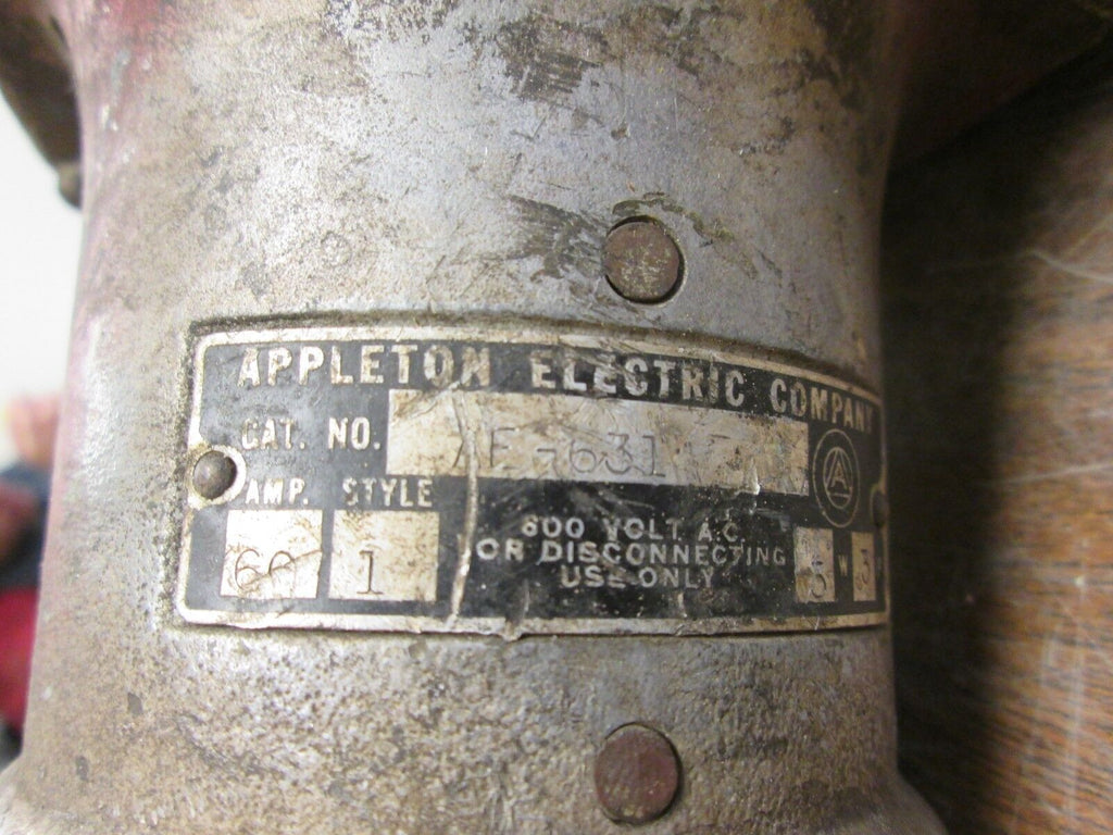 Appleton Receptacle w/ Base AE-631 60A 600V 3P 3W *Missing Cover* Used