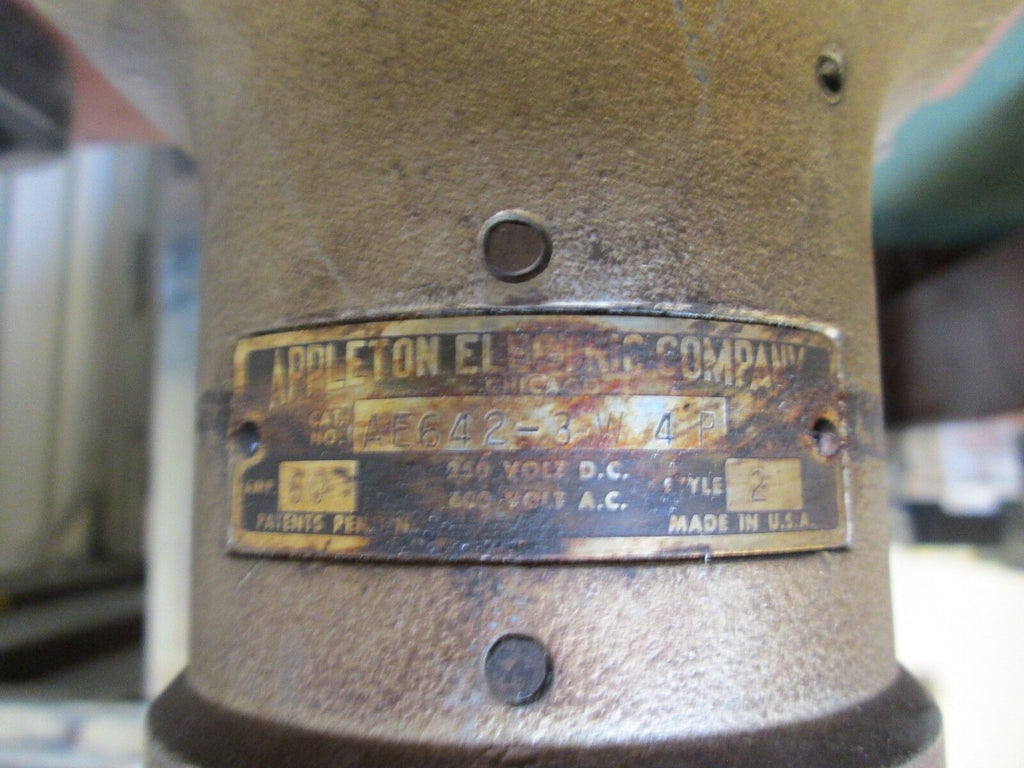 Appleton Receptacle w/ Base AE 642 60A 600V 3W 4P Used