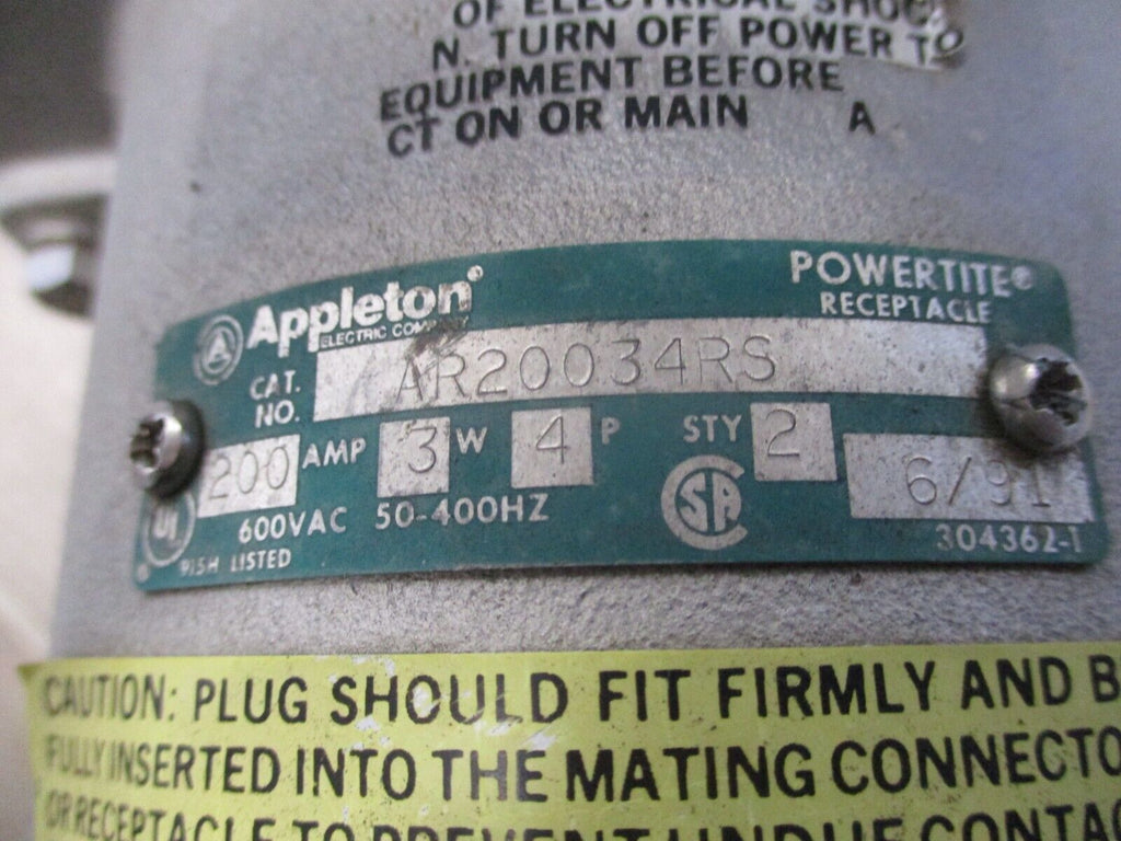 Appleton Reverse Service Powertite Receptacle AR20034RS 200A 600V 3W 4P 50-400Hz
