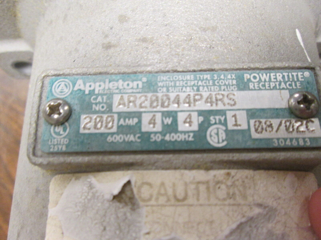 Appleton Reverse Service Receptacle AR20044P4RS 200A 600V 4W 4P Used