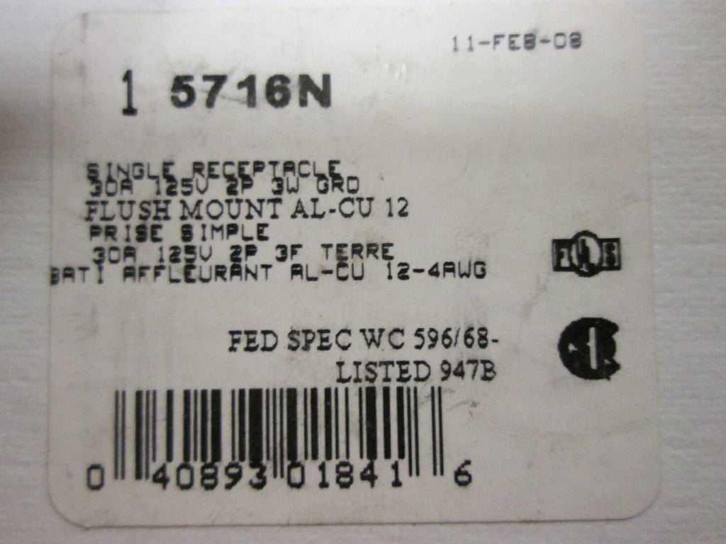 Arrow Hart AH5716N Single Receptacles 30A 125V *New In Box, Se...