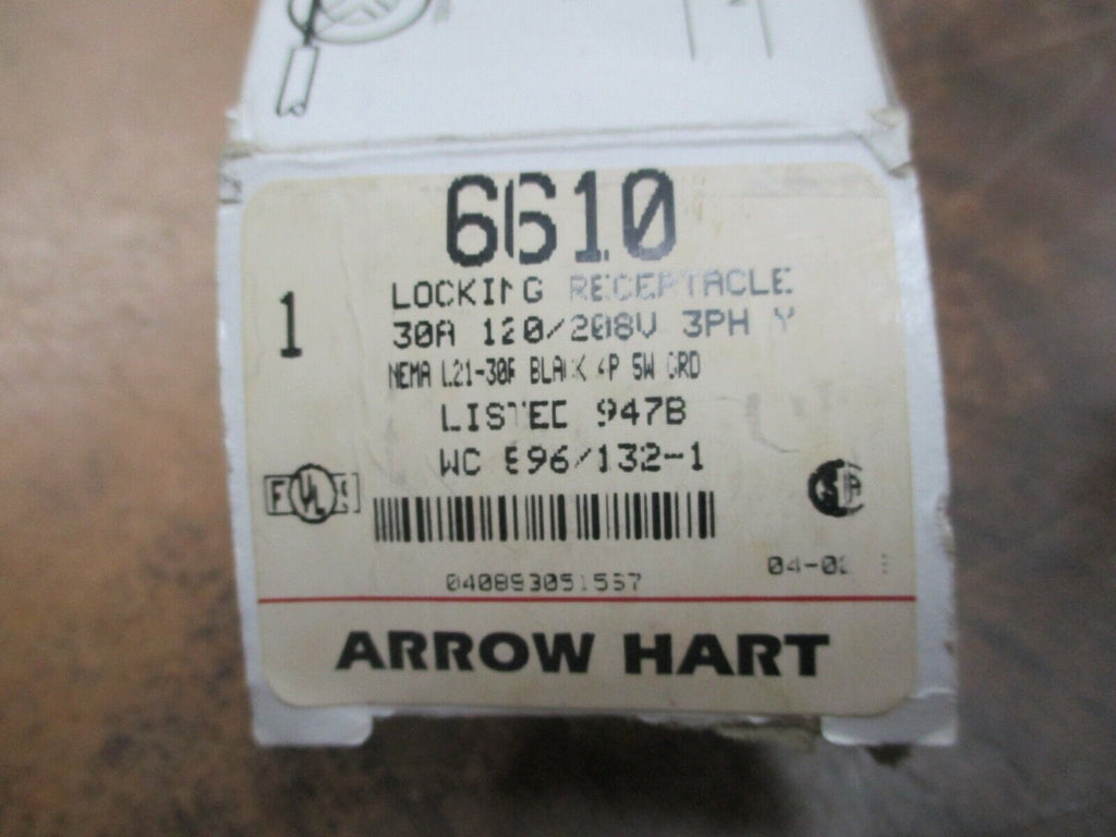 Arrow Hart Locking Receptacle 6610 30A 120/208V 3Ph 4P 5W New Surplus