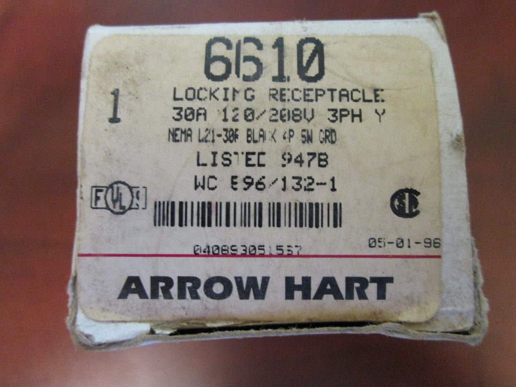 Arrow Hart Receptacle 6610 30 A 120/208 V 3 Ph 4 Pole 5 Wire Condition: NewBrand: Arrow HartMPN: 6610 Arrow Hart Receptacle 6610 30 A 120/208 V 3 Ph 4 Pole 5 Wire Arrow Hart Receptacle 6610 30 A 120/208 V 3 Ph 4 Pole 5 WireLOC: 4A3-11 Arrow Hart Receptacle 6610 30 A 120/208 V 3 Ph 4 Pole 5 Wire LOC: 4A3-11