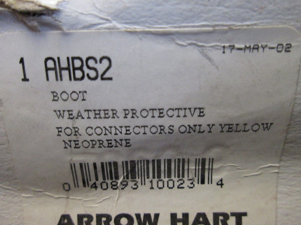 Arrow Hart Weather Protective Plug Boot AHBS2 *Yellow Neoprene* New Surplus Condition: New – Open boxMPN: AHBS2Model: Weather Protective Plug BootBrand: Arrow HartColor: YellowType: Electrical Plug Arrow Hart Weather Protective Plug Boot AHBS2 *Yellow Neoprene* New Surplus Arrow Hart Weather Protective Plug Boot Part # AHBS2 Yellow NeopreneNew SurplusLOC: 17A4-16 Arrow Hart Weather Protective Plug Boot Part # AHBS2 Yellow Neoprene New Surplus LOC: 17A4-16