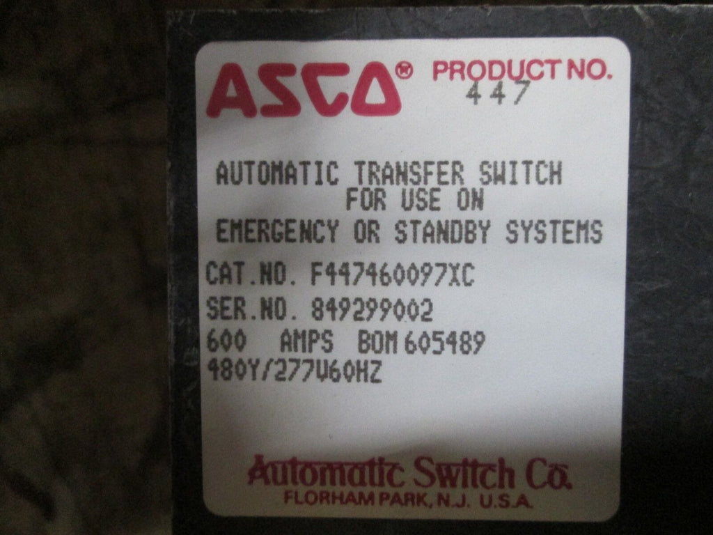 ASCO Automatic Transfer Switch F447460097XC 600A 480Y/277V 4W ...