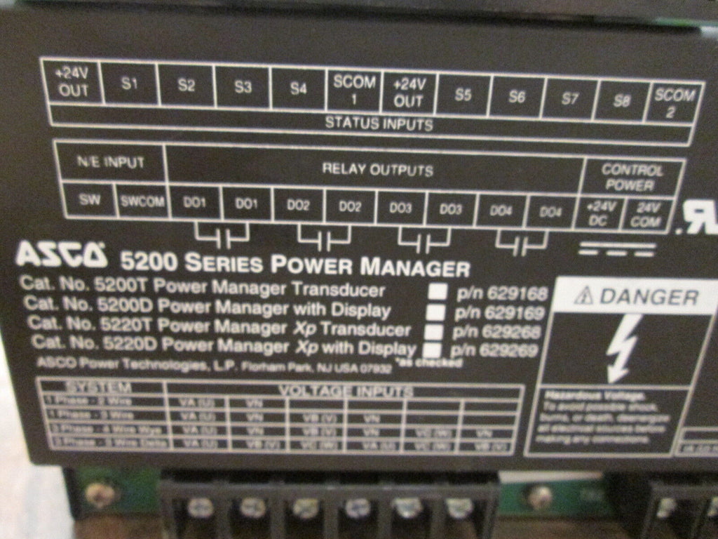 ASCO Power Manager 5200 Supply: 24VDC 0.4A 9.6VA Input: 120-06...