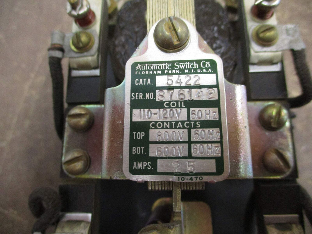 Asco RC Switch 5422 110-120V Coil 25A 600V Used Asco RC Switch...