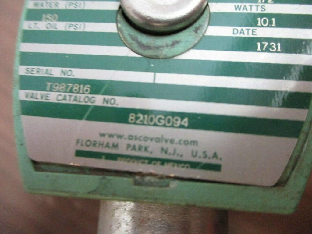 Asco Red-Hat II Solenoid Valve Part#: 8210G094 150 PSI 10.5 W 1/2" Pipe Used Loc: 15D4-20- Part#: 8210G094