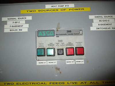Asco Series 386 Non-Automatic Transfer Switch 38637091XC 70A 480Y/277V 60Hz 3Ph Condition: UsedBrand: ASCOMPN: 38637091XCRated Amperage: 70 A Asco Series 386 Non-Automatic Transfer Switch 38637091XC 70A 480Y/277V 60Hz 3Ph Asco Series 386 Non-Automatic Transfer Switch Part #: 38637091XC 70 A 480Y/277 V 60 Hz 3Ph Nema 12 Dims: 36" x 18" x 14"Weighs: 130 LBSUsed Loc: AB11-7121 / AB3E1 Asco Series 386 Non-Automatic Transfer Switch Part #: 38637091XC 70 A 480Y/277 V 60 Hz 3Ph Nema 12 Dims: 36" x 18" x 14" Weighs: 130 LBS Uséd Loc: AB11-7121 / AB3E1