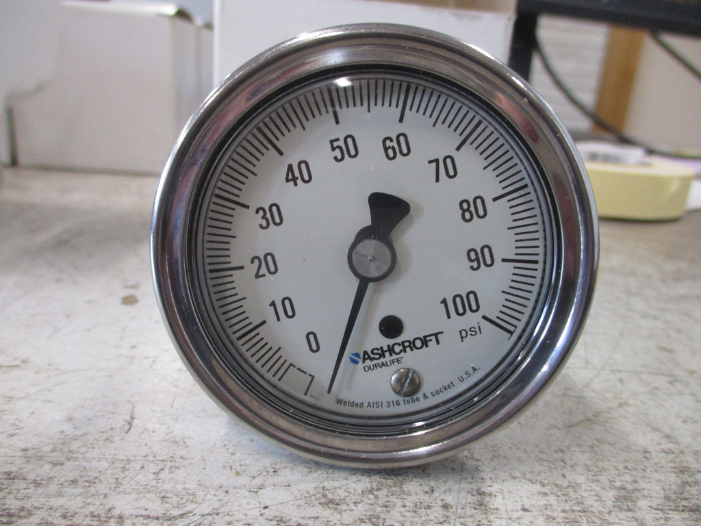 Ashcroft Industrial Duralife Pressure Gauge 25-1009-SW-02B-100# Range: 0-100PSI Size: 2 1/2" New Surplus LOC 56G5-7