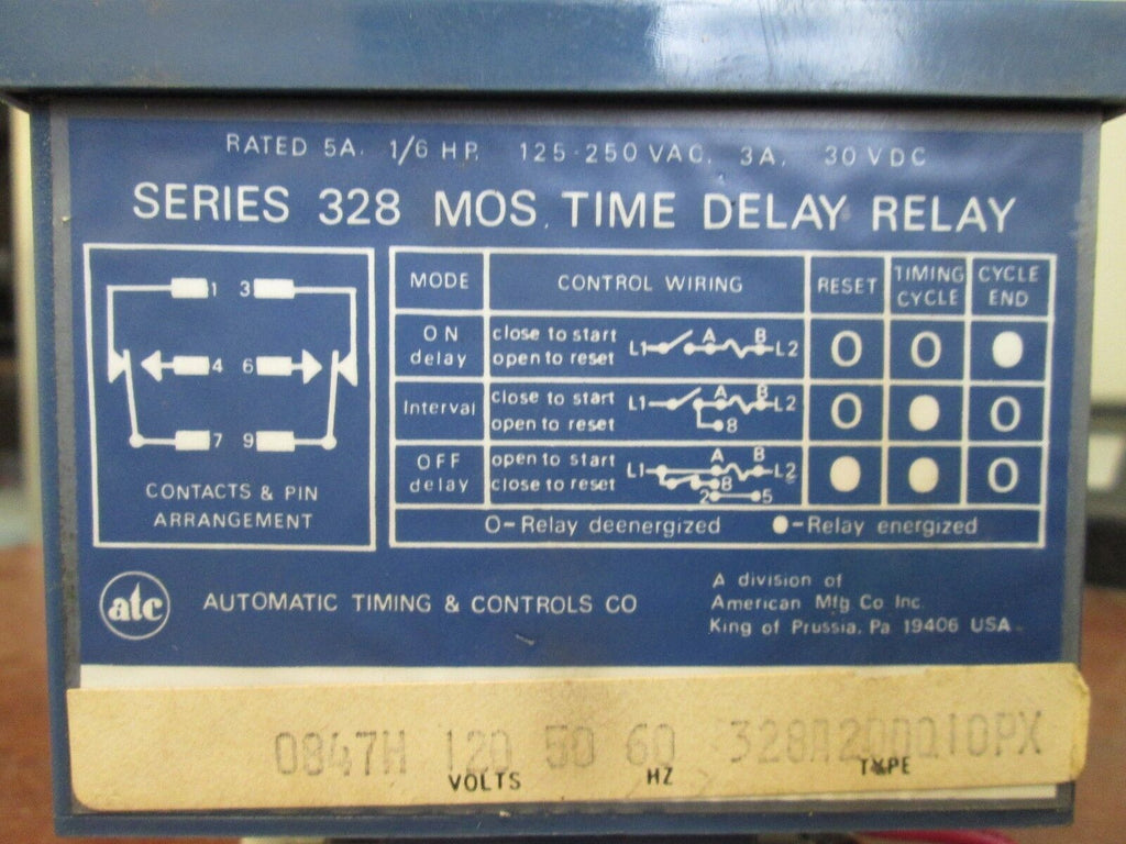 ATC 328 MOS Time Delay Relay 328A200Q10PX Rated 5A 1/6HP 125-2...