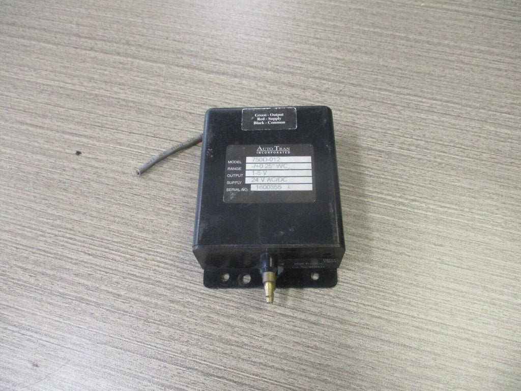 Auto Tran Pressure Transducer 750D-012 Range: -/+ 0.25" WC Output : 1-5V Used.
