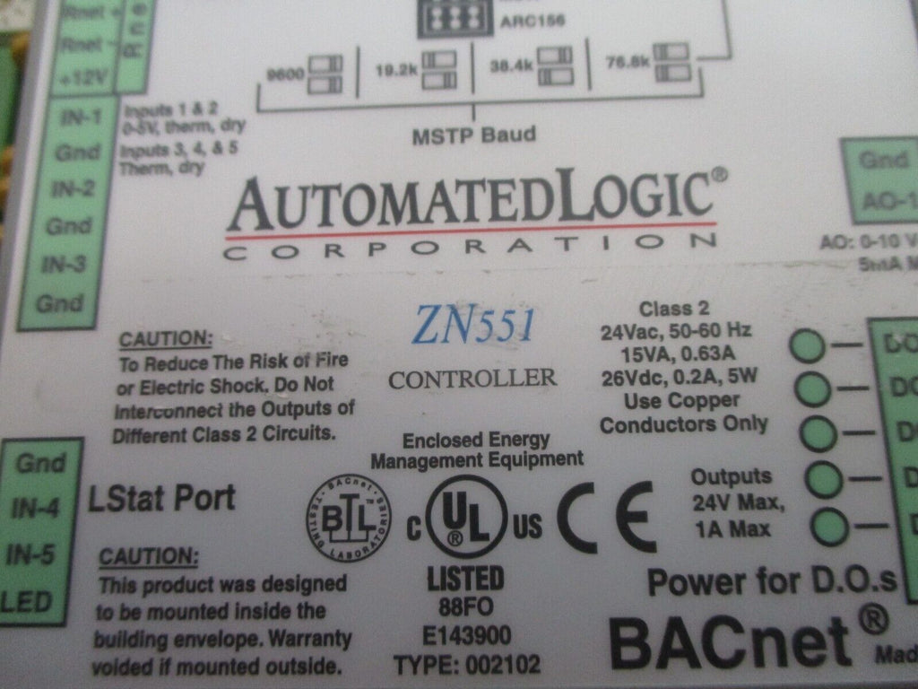 Automated Logic BACnet Controller ZN551 Used Condition: UsedBrand: Automated LogicMPN: ZN551 Automated Logic BACnet Controller ZN551 Used Automated Logic BACnet Controller Part #: ZN551 Used Loc: 19J3-26 Automated Logic BACnet Controller Part #: ZN551 Uséd Loc: 19J3-26
