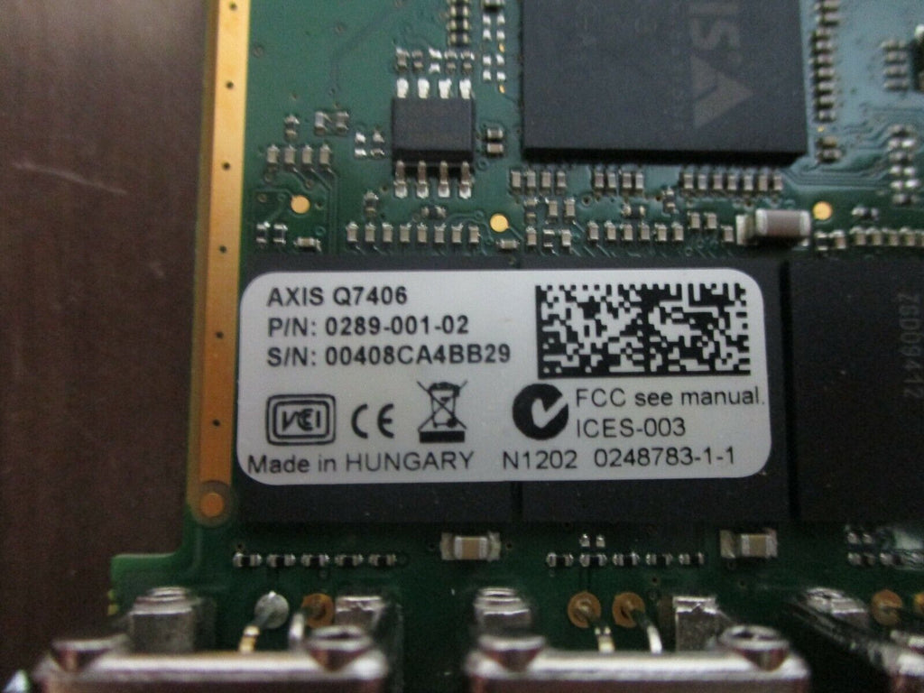 Axis Q7406 6-Channel Video Encoder Blade Module 0289-001-02 Used Condition: UsedMPN: 0289-001-02Brand: AxisType: Video Encoder Blade Module Axis Q7406 6-Channel Video Encoder Blade Module 0289-001-02 Used Axis Q7406 6-Channel Video Encoder Blade Module Part #: 0289-001-02 Used Loc: 13B5-10 Axis Q7406 6-Channel Video Encoder Blade Module Part #: 0289-001-02 Uséd Loc: 13B5-10