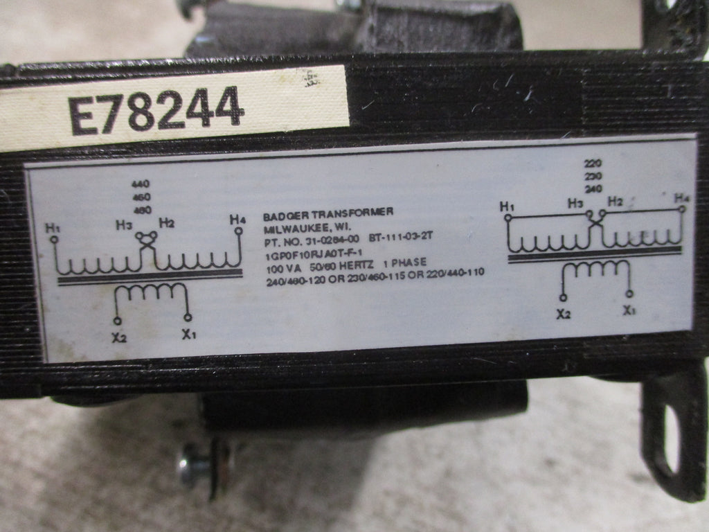 Badger Transformer Control Transformer 31-0264-00 100VA Pri: 240/480V Sec: 120V 1P 50/60Hz Used LOC 58D2-30