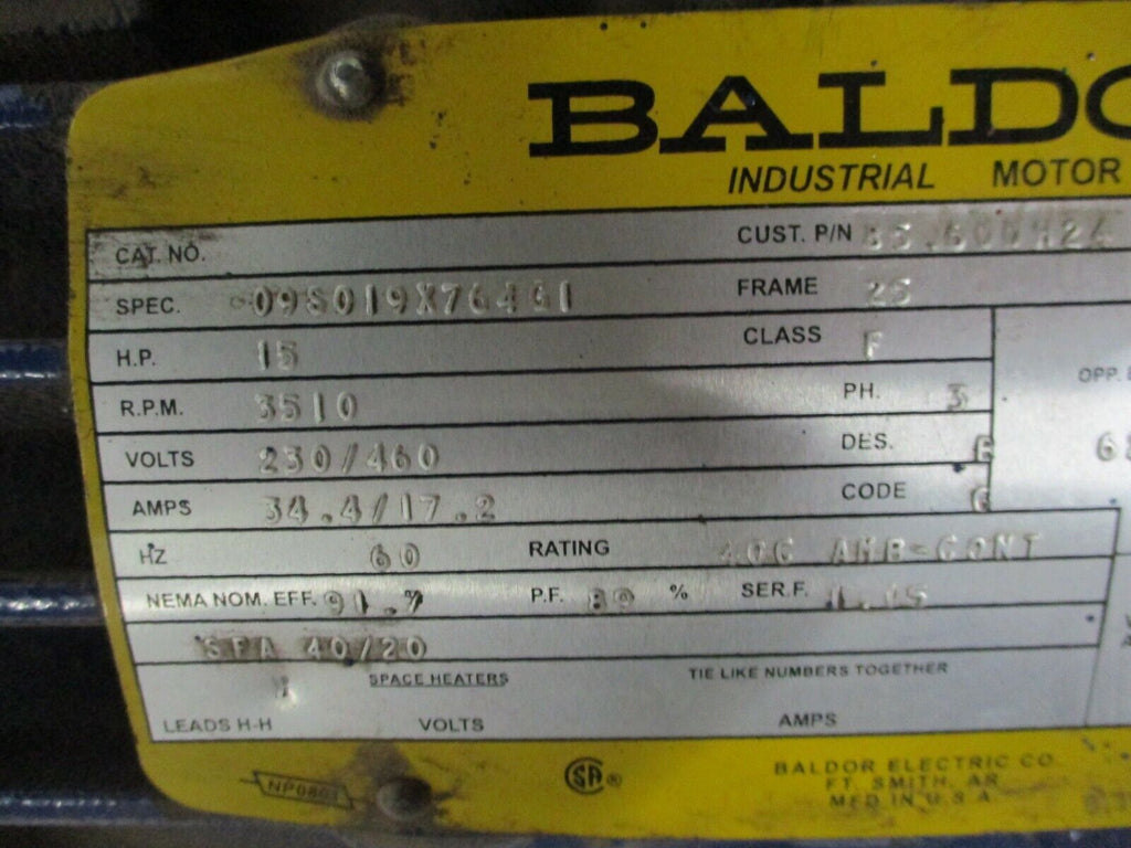 Baldor AC Motor 09S019X764G1 15HP 3600RPM FR:25 230/460V 34.4/17.2A 3Ph Used