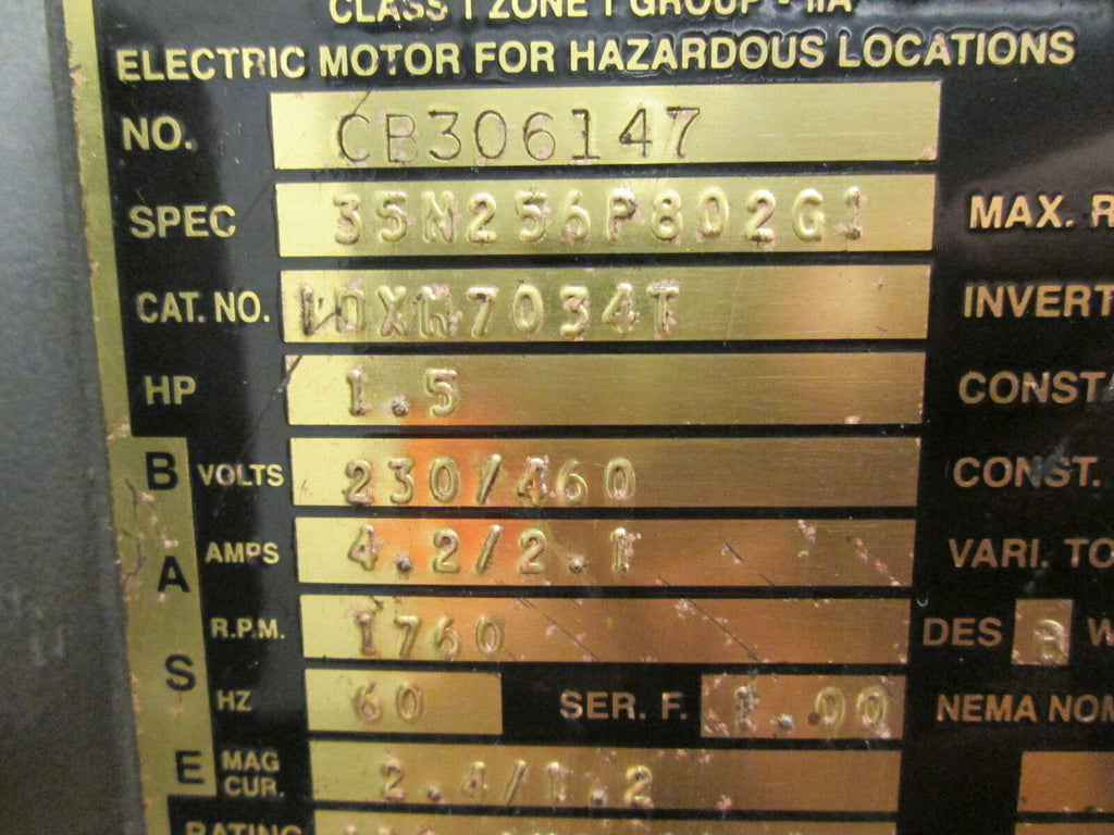 Baldor AC Motor 1DXM7034T 1.5HP 1760RPM FR: 145TC 230/460V 4.2/2.1A Used Condition: UsedBrand: BaldorMPN: 1DXM7034T Baldor AC Motor 1DXM7034T 1.5HP 1760RPM FR: 145TC 230/460V 4.2/2.1A Used Baldor AC Motor Part #: 1DXM7034T 1.5HP 1760RPM Frame: 145TC 230/460V 4.2/2.1A UsedLOC AB7K1-4 Baldor AC Motor Part #: 1DXM7034T 1.5HP 1760RPM Frame: 145TC 230/460V 4.2/2.1A Uséd LOC AB7K1-4