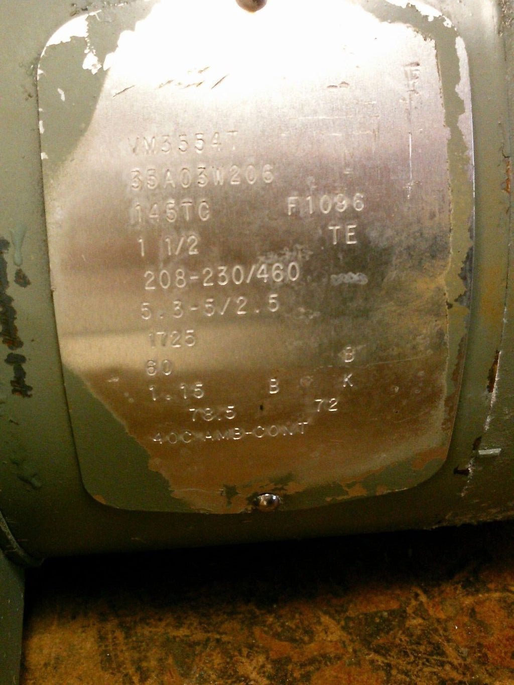 Baldor AC Motor VM3554T 1.5HP 1800RPM 208-230/460V 5.3-5/2.5A 60Hz Used Condition: UsedBrand: BaldorType: MotorOperating Frequency: 60 HzHorsepower: 1.5hpCurrent Type: ACMPN: VM3554T Baldor AC Motor VM3554T 1.5HP 1800RPM 208-230/460V 5.3-5/2.5A 60Hz Used Baldor AC Motor Part #: VM3554T 1.5HP 1725RPM 208-230/460V 5.3-5/2.5A 60Hz TE Enclosure145TC FrameUsedLOC AB11-305 / AB3G2 Baldor AC Motor Part #: VM3554T 1.5HP 1725RPM 208-230/460V 5.3-5/2.5A 60Hz TE Enclosure 145TC Frame Uséd LOC AB11-305 / AB3G2