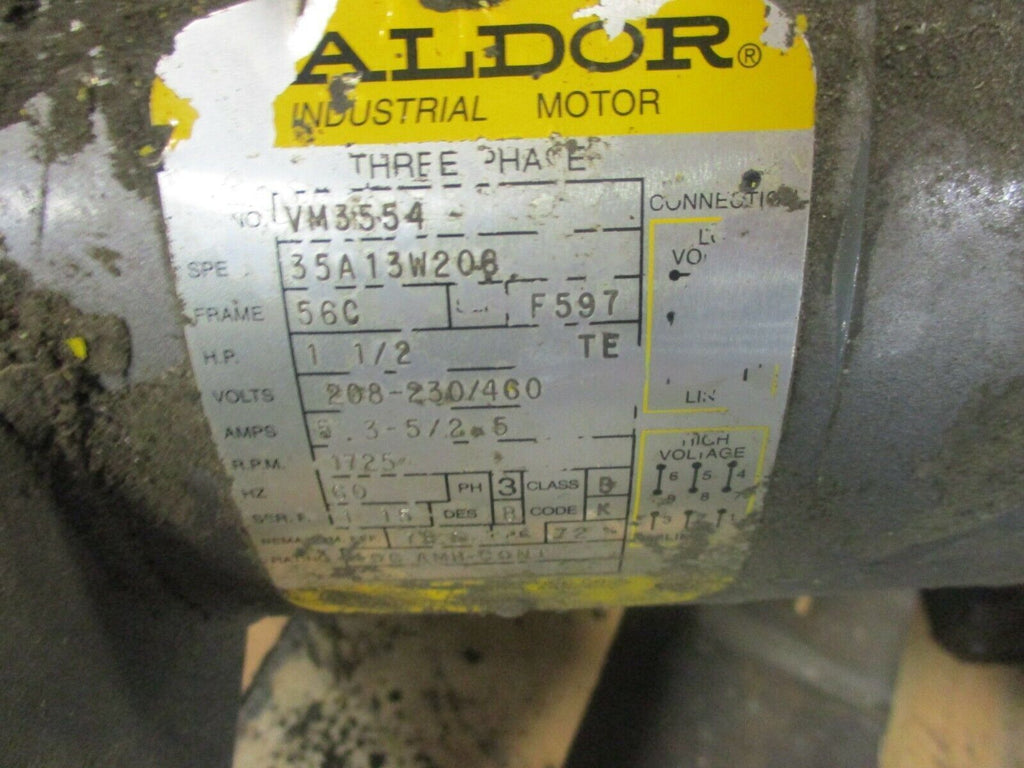 Baldor AC Motor w/ Gear VM3554 1.5HP 1800RPM FR:56C 208-230/460V 5.3-5/2/5A Used