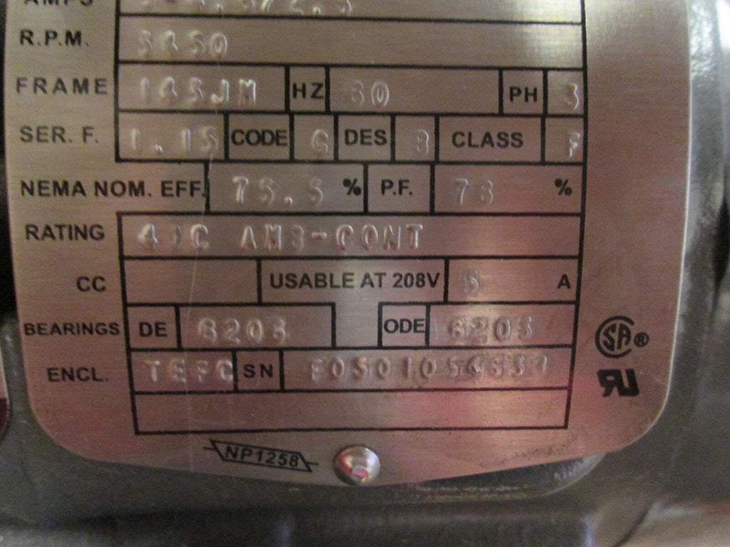 Baldor Corrosion Protected Chemical Processing Motor 05E057W004G1 1.5HP 3600RPM_x000D_ Condition: New – Open boxMPN: 05E057W004G1Brand: Baldor Baldor Corrosion Protected Chemical Processing Motor 05E057W004G1 1.5HP 3600RPM Baldor Corrosion Protected Chemical Processing Motor Part #: 05E057W004G1 1.5HP 3450RPMFrame: 143JMEnclosure: TEFC208-230/460V5-4.6/2.3A*No Box*New SurplusLOC AB9E3-10 Baldor Corrosion Protected Chemical Processing Motor Part #: 05E057W004G1 1.5HP 3450RPM Frame: 143JM Enclosure: TEFC 208-230/460V 5-4.6/2.3A *No Box* New Surplus LOC AB9E3-10
