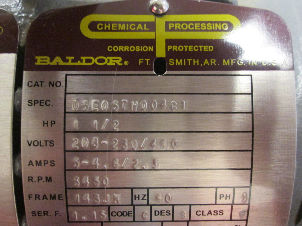 Baldor Corrosion Protected Chemical Processing Motor 05E057W004G1 1.5HP 3600RPM