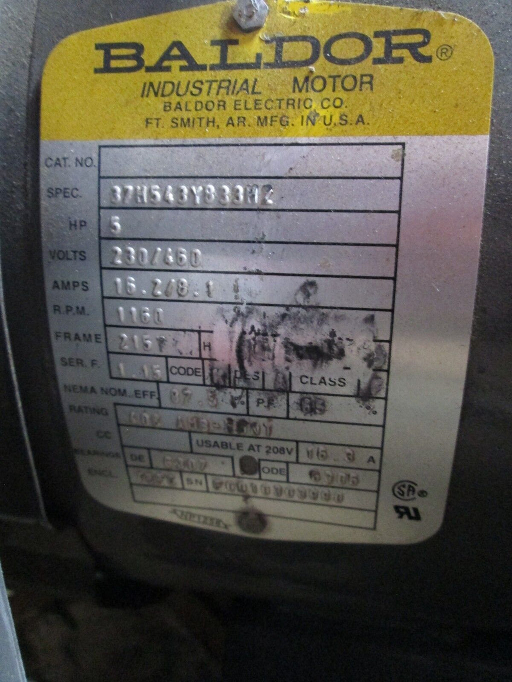 Baldor Double-Shafted AC Motor 37H543Y833H2 5HP 1160RPM 230/46...