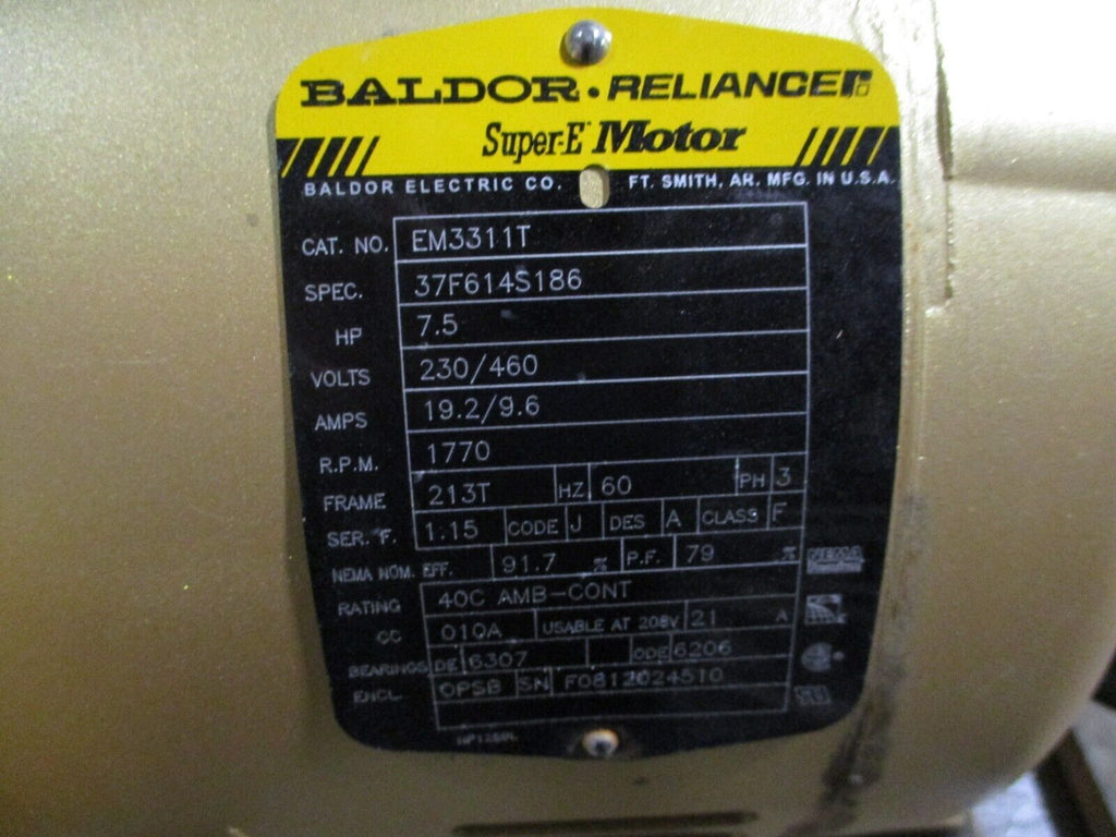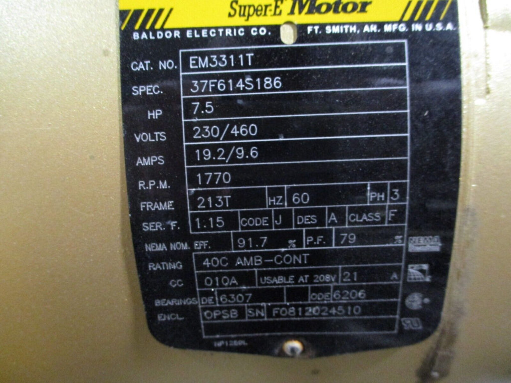 Baldor Motor EM3311T 7.5HP 1800RPM 230/460V 19.2/9.6A 60Hz 3Ph Used
