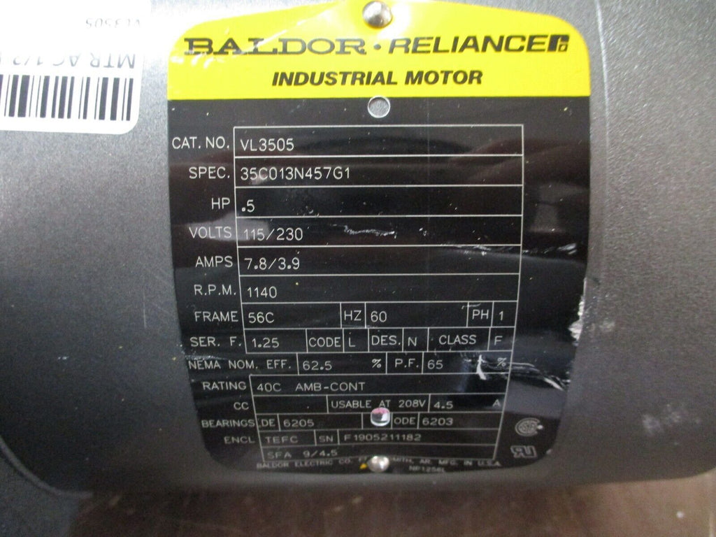 Baldor Motor VL3505 0.5HP 115/230V 7.8/3.9A 1200RPM 1Ph 60Hz U...