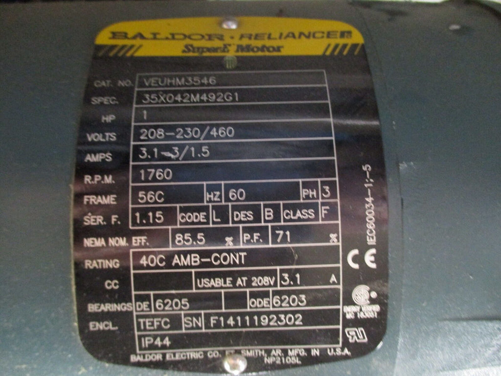 Baldor Motor w/ Gear VEUHM3546 1HP 1800RPM 208-230/460V 3.1-3/1.5A 60Hz 3Ph Used