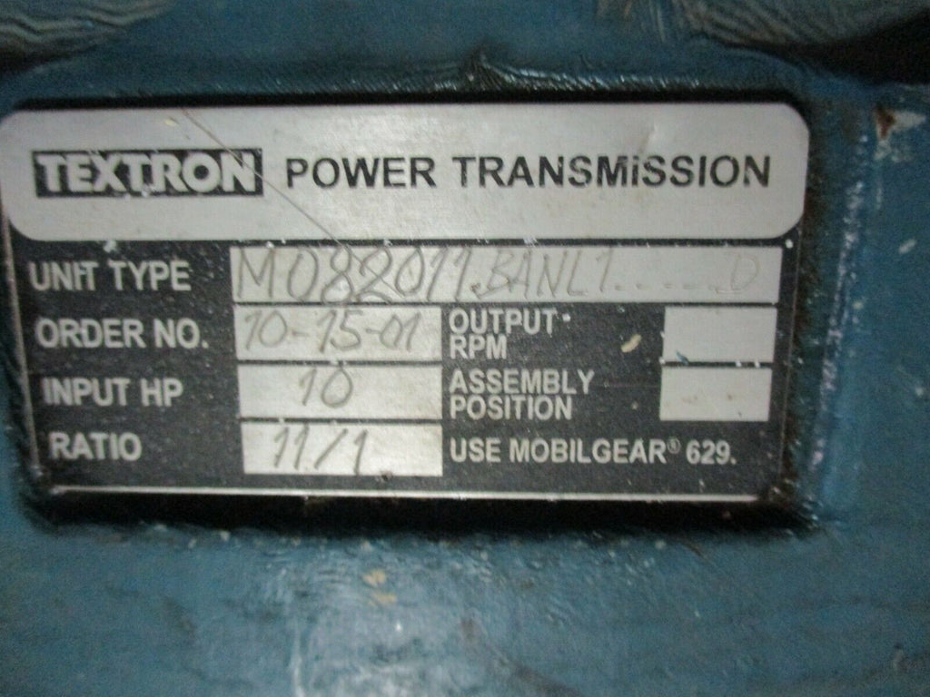 Baldor/Textron Gearmotor IDXM7570T/M082011.BANL1-----D 11:1 Ratio 10HP Used