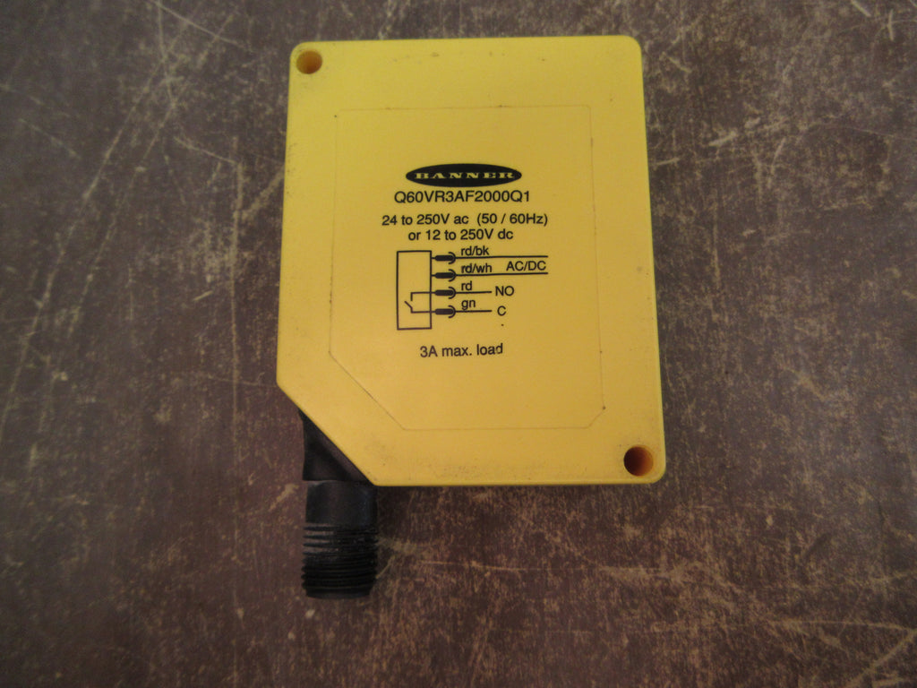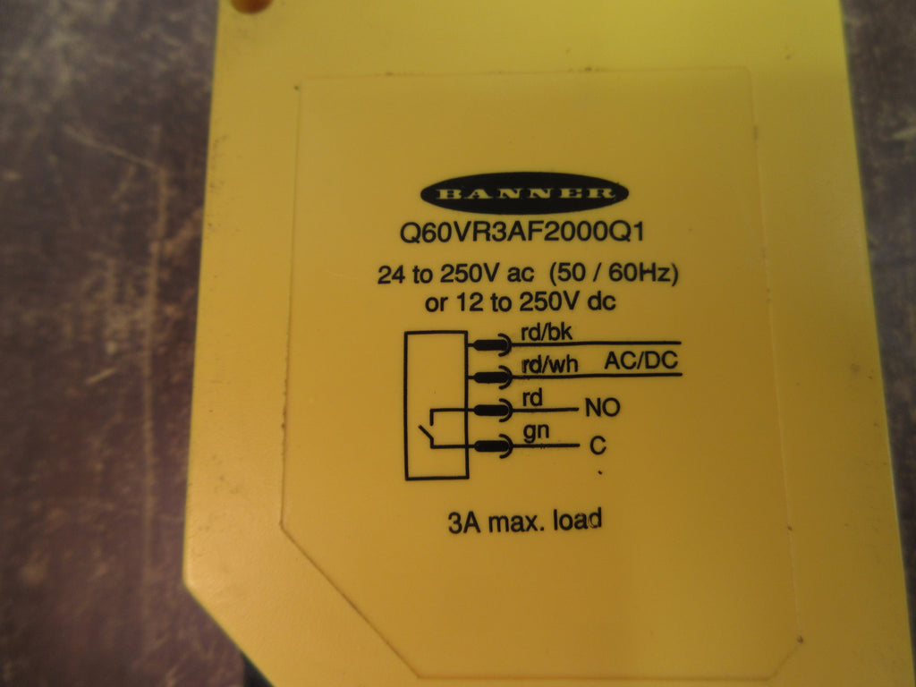 Banner Photoelectric Sensor Q60VR3AF2000Q1 24-250VAC 12-250VDC 3A Used LOC 58A4-15