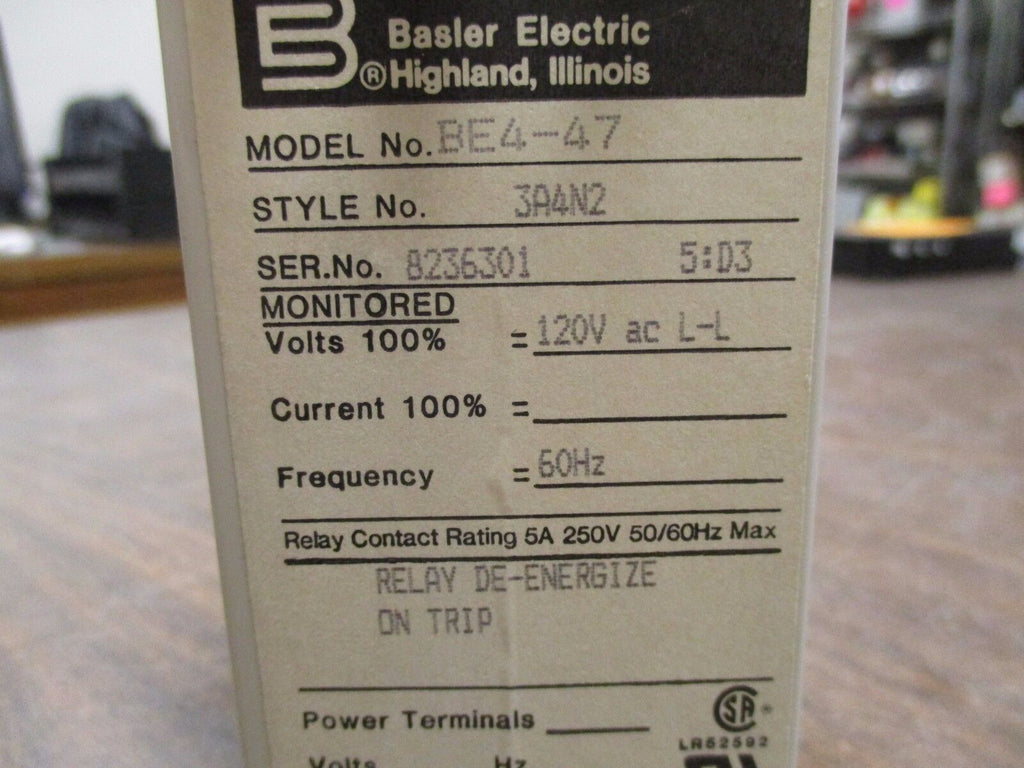 Basler Electric Phase Balance Relay BE4-47 120V 60Hz Used Condition: UsedBrand: Basler ElectricMPN: BE4-47 Basler Electric Phase Balance Relay BE4-47 120V 60Hz Used Basler Electric Phase Balance Relay Part #: BE4-47 120V 60Hz UsedLOC 4C3-69 Basler Electric Phase Balance Relay Part #: BE4-47 120V 60Hz Uséd LOC 4C3-69