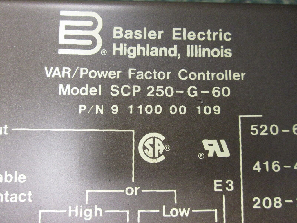 Basler Electric SCP 250-G-60 VAR/Power Factor Controller Part # 9 1100 00 109 Used LOC: 11D3-4