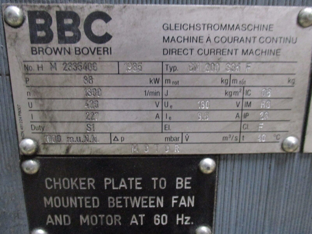 BBC DC Motor w/Blower & Motor GN200S35F 88kw 420VDC Arm/180V Field 227A 1800RPM Condition: UsedBrand: BBCMPN: GN200S35FUPC: Does not apply BBC DC Motor w/Blower & Motor GN200S35F 88kw 420VDC Arm/180V Field 227A 1800RPM BBC DC Motor w/Blower & Motor Part # GN200S35F 88kw 420 VDC Arm/180V Field 227A 1800 RPMUsed LOC AB9C1-3 BBC DC Motor w/Blower & Motor Part # GN200S35F 88kw 420 VDC Arm/180V Field 227A 1800 RPM Uséd LOC AB9C1-3