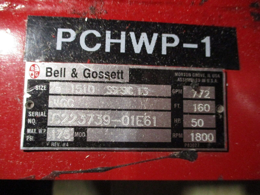 Bell & Gossett Pump Part #: e-1510 SSFSIC 13 4GC 50 HP 772 GPM 1800 RPM 160 Ft Head 175 PSI230/460 V3Ph Dims: 68" x 32" x 37"Weighs: 1,165 LBSUsedLoc: AB11-7147- Part #: e-1510 SSFSIC 13 4GC
