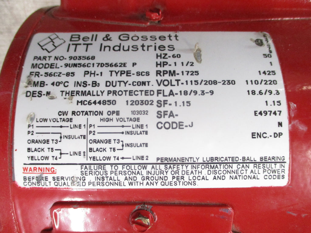 Bell & Gossett Series 60 Pump 172724 Size: 1-1/2x7 1.5HP 1725RPM Used LOC AB11-8510 / AB29B4