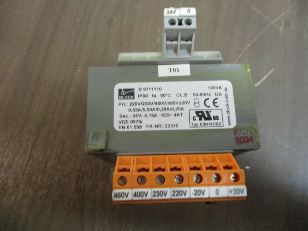 Block Transformer B 9711110 100VA Pri: 230/460V Sec: 24V 50-60Hz Used