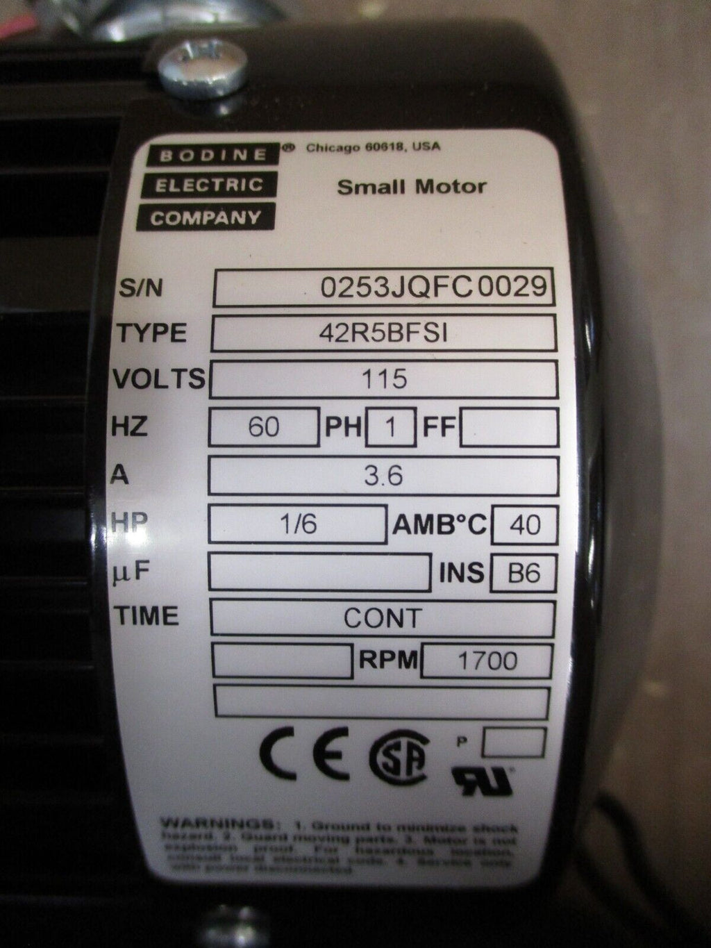 Bodine Electric Company Motor 42R5BFSI 1/6HP 1800RPM 115V 3.6A...