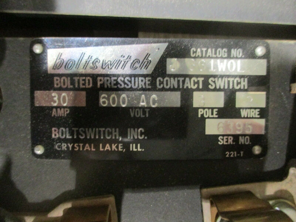 Boltswitch Bolted Pressure Contact Switch J 361WOL 30A 600V 3P 3W 20A Fuses Used