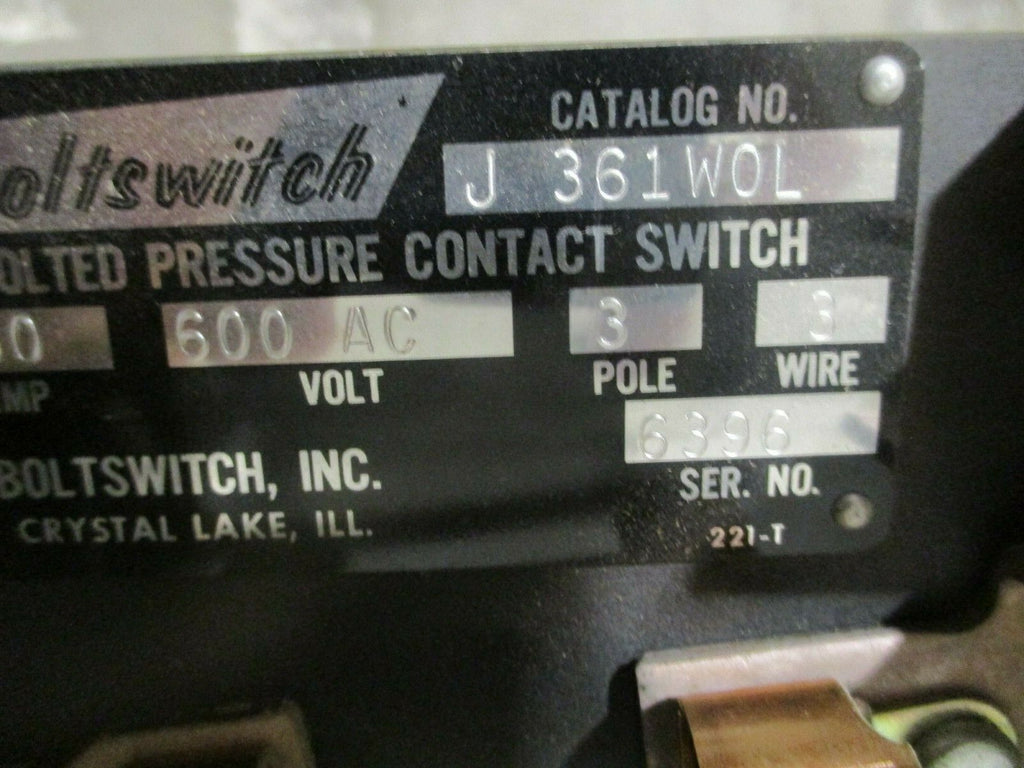 Boltswitch Bolted Pressure Contact Switch J 361WOL 30A 600V 3P...