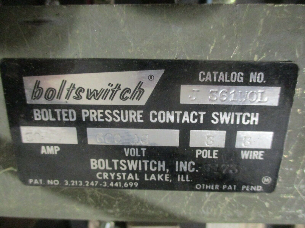Boltswitch Bolted Pressure Contact Switch J 361WOL 30A 600V 3P 3W No Fuses Used