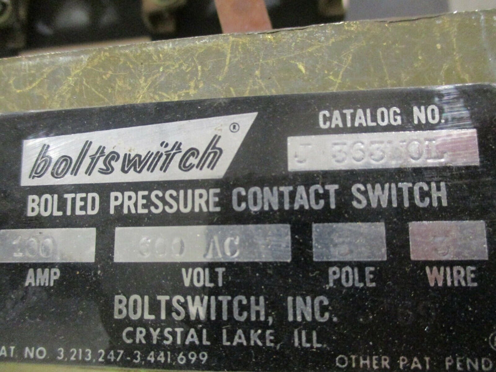 Boltswitch Bolted Pressure Contact Switch J 363WOL 100A 600V 3P 3W No Fuses Used