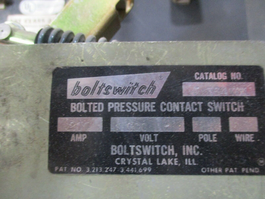Boltswitch Bolted Pressure Contact Switch J 364WOL 200A 600V 3P 3W No Fuses Used