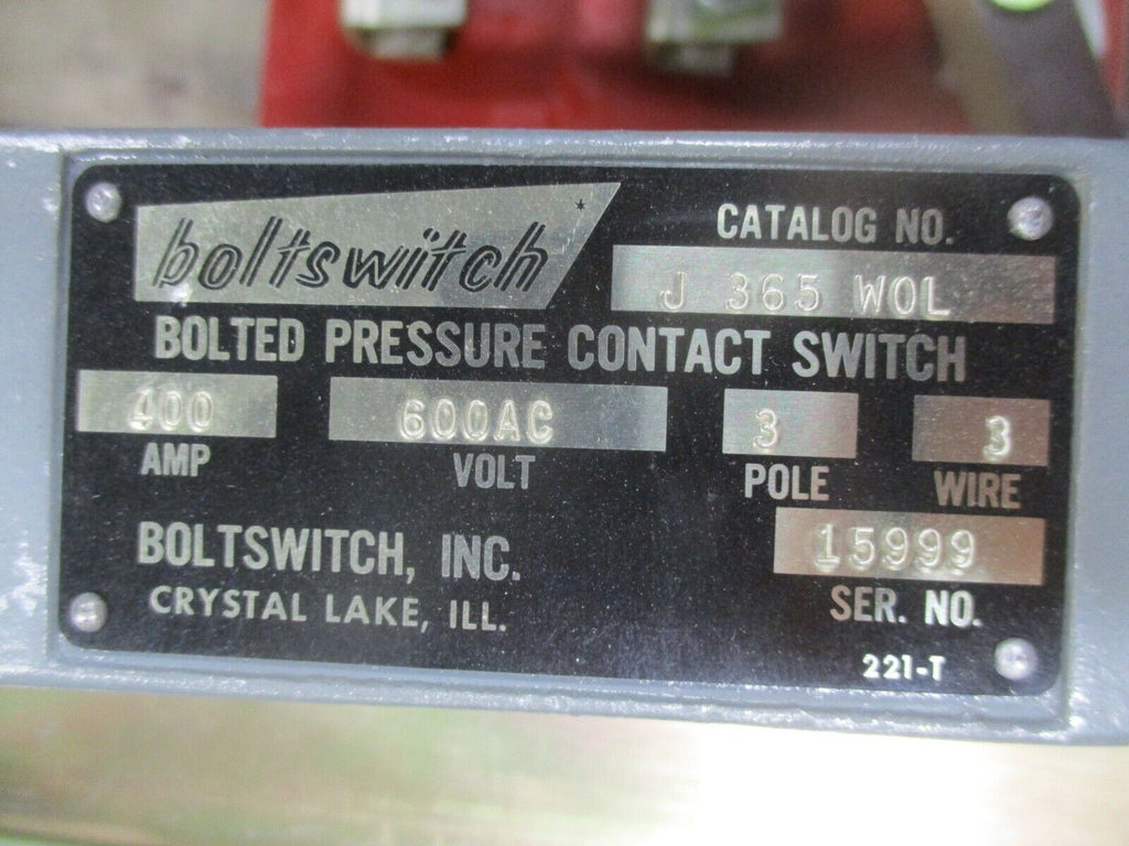 Boltswitch Bolted Pressure Contact Switch J 365WOL 400A 600V 3...