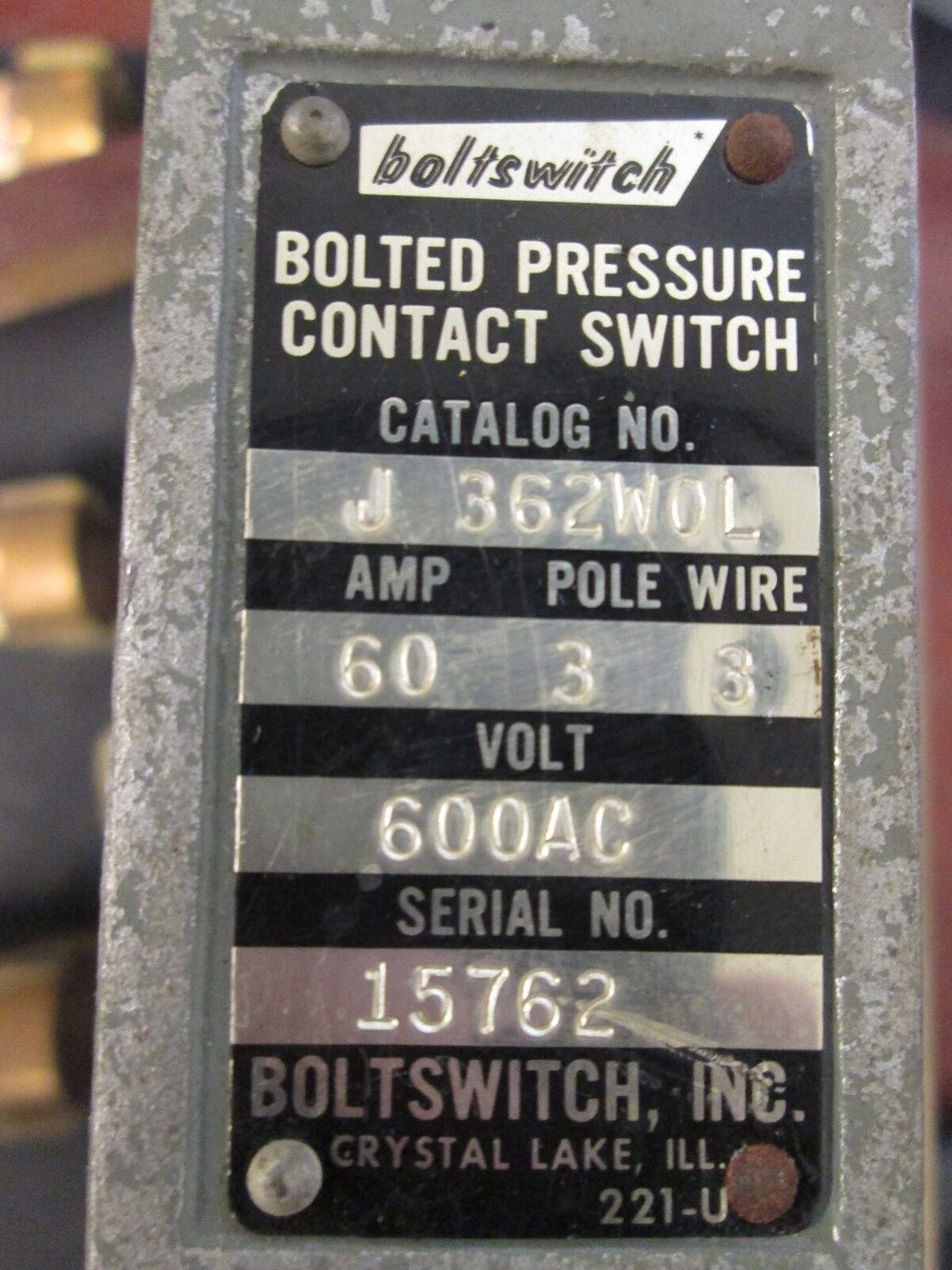 Boltswitch Bolted Pressure Contact Switch J362W0L 60A 600V 3P ...