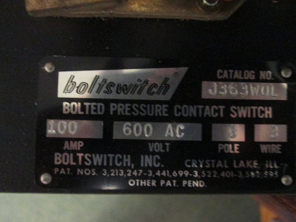 Boltswitch Bolted Pressure Contact Switch J363W0L 100A 600V 3P 3W Used