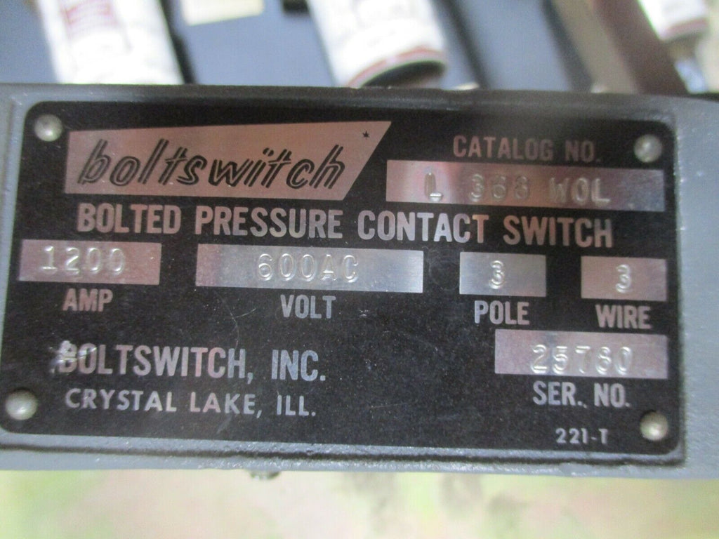 Boltswitch Bolted Pressure Contact Switch L 368 WOL 1200A 600V 3P 3W 1000A Fuses
