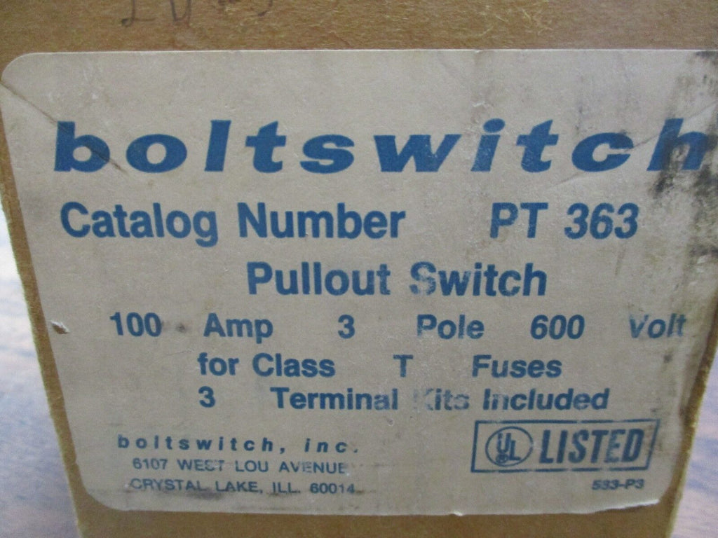 Boltswitch Fuse Pullout Switch PT363 100A 600V 3P New Surplus