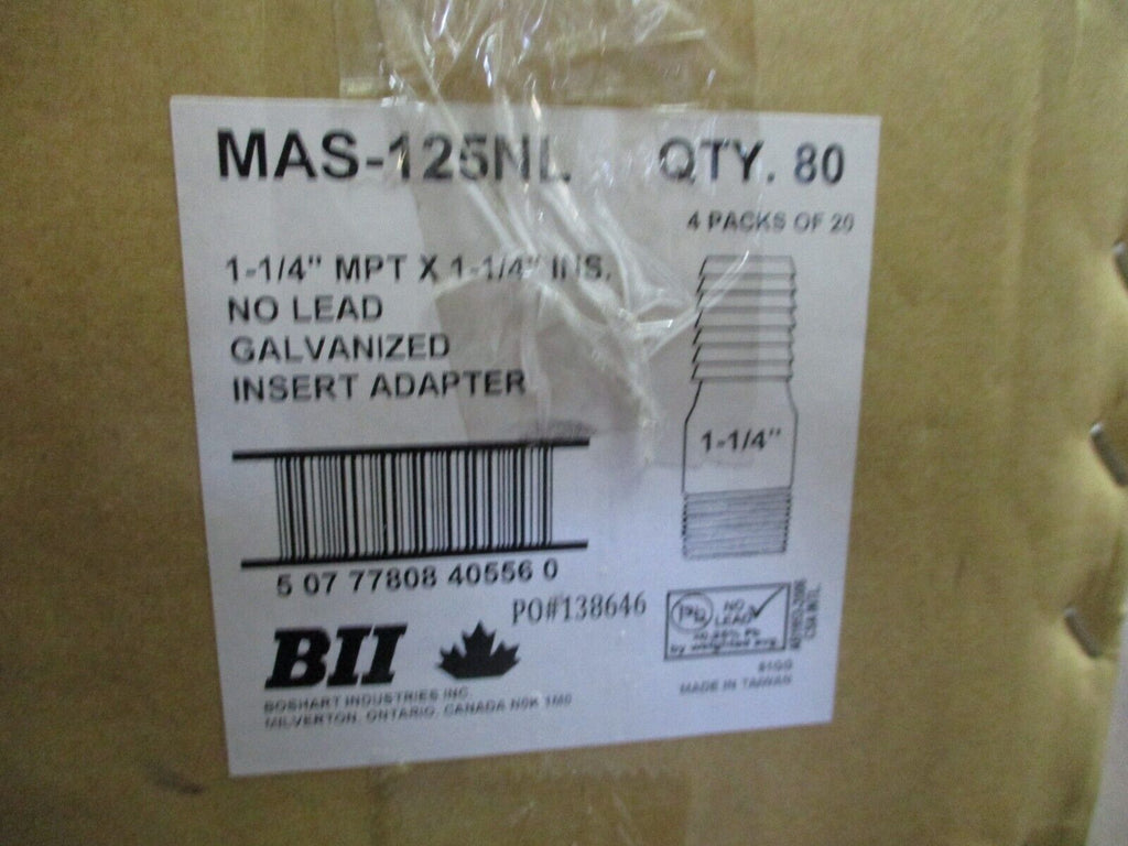 Boshart Galvanized Insert Adapter Part #: MAS-125NL 1-1/4" MPT x 1-1/4" Ins. No Lead *Box of 80*New Surplus Loc: AB11-5163 / AB4J2- Part #: MAS-125NL